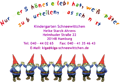 Im schönen Stadtteil Harvestehude gelegen hat unser Kindergarten Schneewittchen seit 1992 Erfahrung in der Kinderbetreuung. Besonders hervorheben möchten wir den familiären Charakter unseres Kindergartens: Wir möchten zu jedem Kind und den Eltern einen intensiven und offenen Kontakt pflegen. Unser Team aus zwei Erzieherinnen und einer Studentin gewährleistet eine liebevolle und kompetente Betreuung, die sich an der Waldorfpädagogik orientiert.